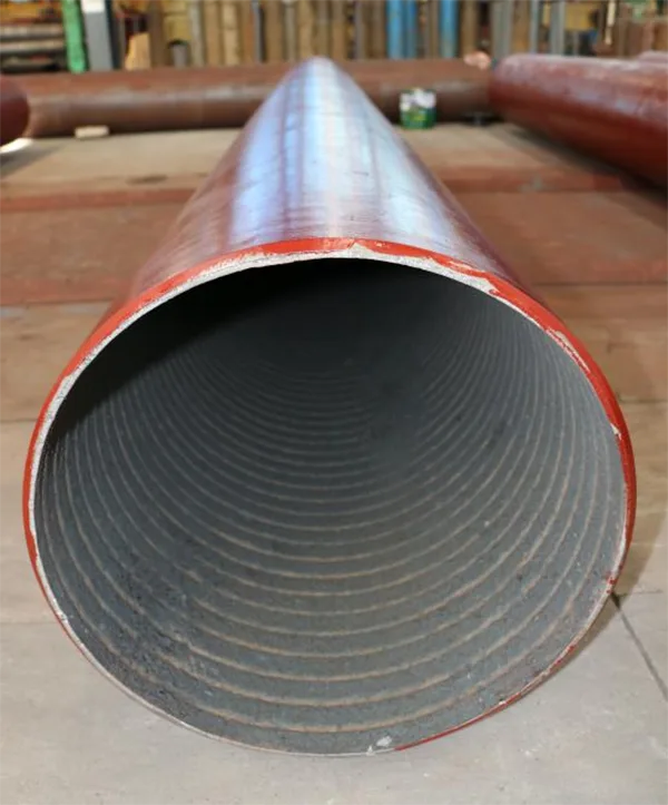 Крупный план внутреннего слоя биметаллической изнашиваемой трубы с накладкой из карбида хрома
