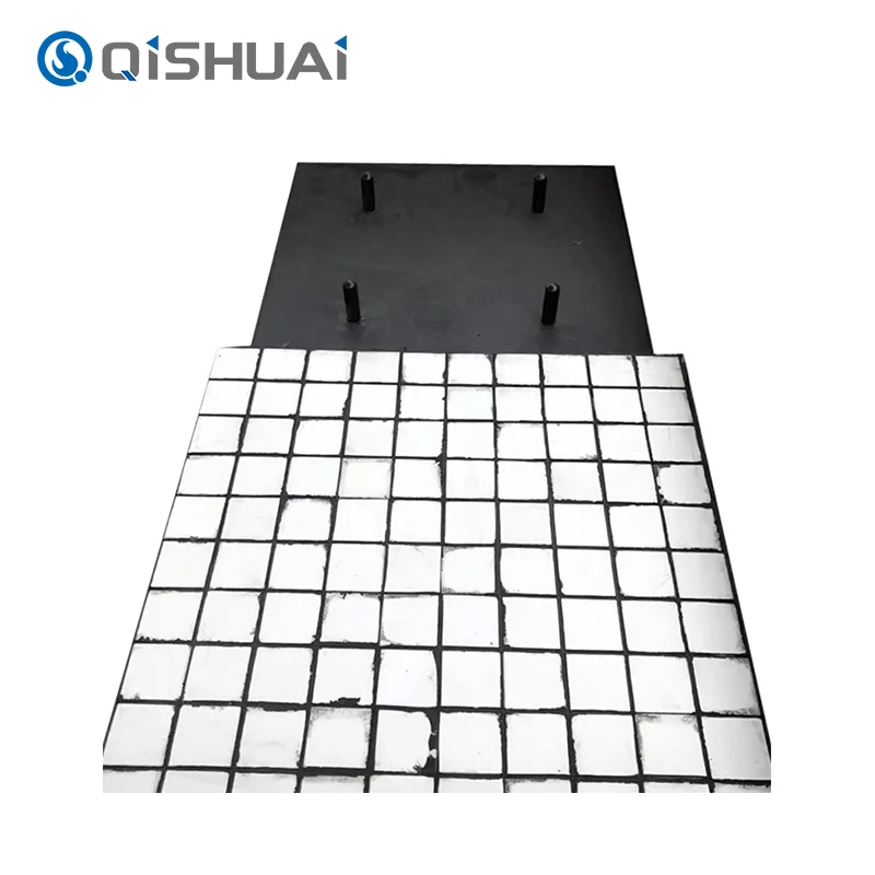 Благодаря термической вулканизации керамические, резиновые и стальные пластины прочно соединяются, образуя прочную интегрированную структуру. Каждая керамическая плитка оснащена сквозными болтами, пронизывающими нижнюю стальную пластину, и надежно приварена, что исключает отслоение керамики во время использования.