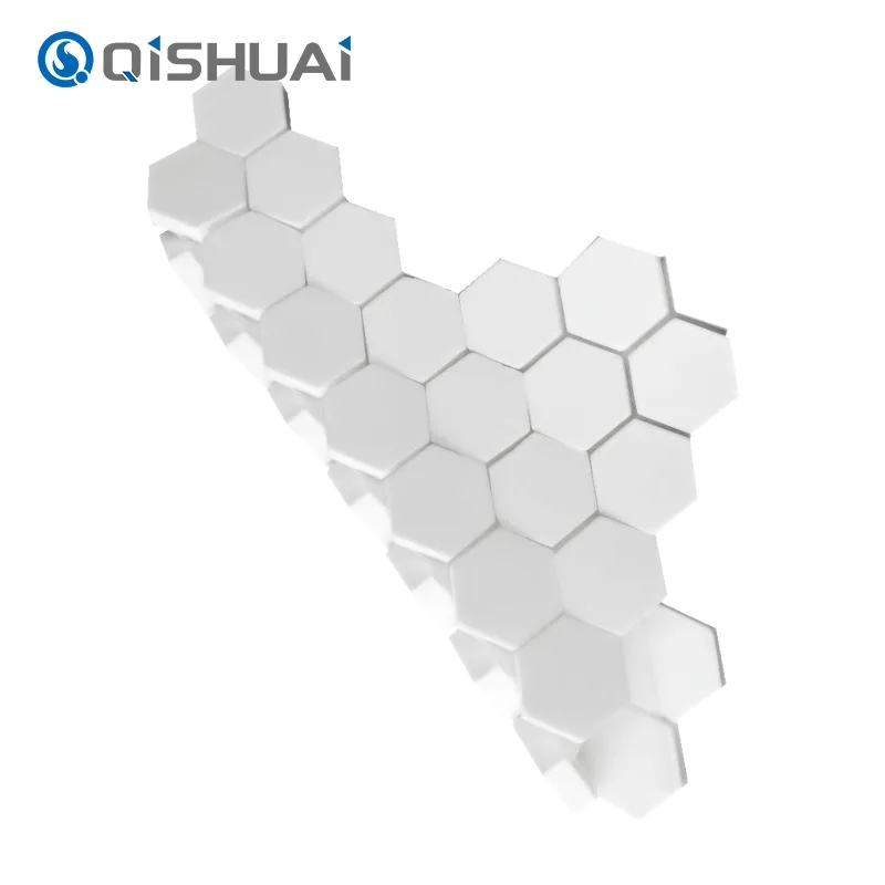 Высококачественная керамическая мозаика из шестигранного глинозема от Shandong Qishuai Wear-Resistant Equipment Co., Ltd., как показано на рисунке, отличается характерным шестиугольным дизайном, который отличает ее от обычных квадратных или круглых плиток. Каждая шестиугольная керамическая мозаичная плитка из оксида алюминия имеет гладкие, плавные края с четко видимыми изысканными деталями.