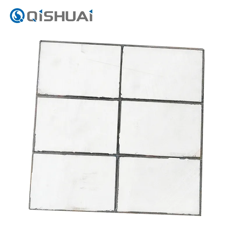 Панель из износостойкой керамической плитки с резиновой вставкой от компании Shandong Qishuai Wear-Resistant Equipment Co., Ltd. представляет собой конструкцию, сочетающую в себе два отдельных слоя. Эта конструкция объединяет керамическую плитку с резиновым слоем. Различные уровни выполняют разные функции, но работают совместно. Такое сочетание обеспечивает защиту оборудования от износа.