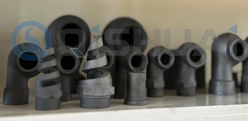 Сопла из карбида кремния часто используются в системах удаления пыли, нанесения покрытий распылением, десульфурации и сжигания в качестве износостойких деталей. В дополнение к имеющимся на складе форсункам простого профиля компания Qishuai также может удовлетворить требования клиентов, разработав при необходимости новые форсунки с модификациями угла распыла, скорости потока и устойчивости к коррозии. Карбид кремния продлевает время безотказной работы оборудования и снижает стоимость его срока службы.